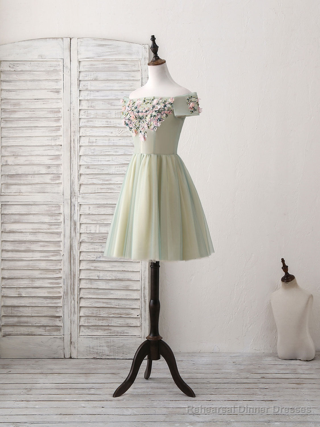 Green Tulle Lace Applique Short Prom Dress, Green Homecoming Dress