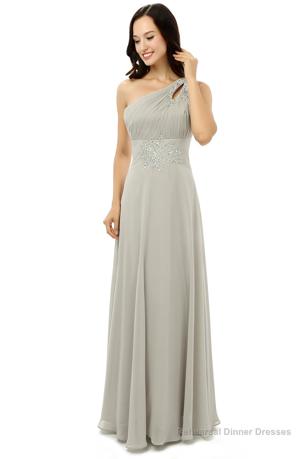 Grey One Shoulder Chiffon Pleats Beading Bridesmaid Dresses