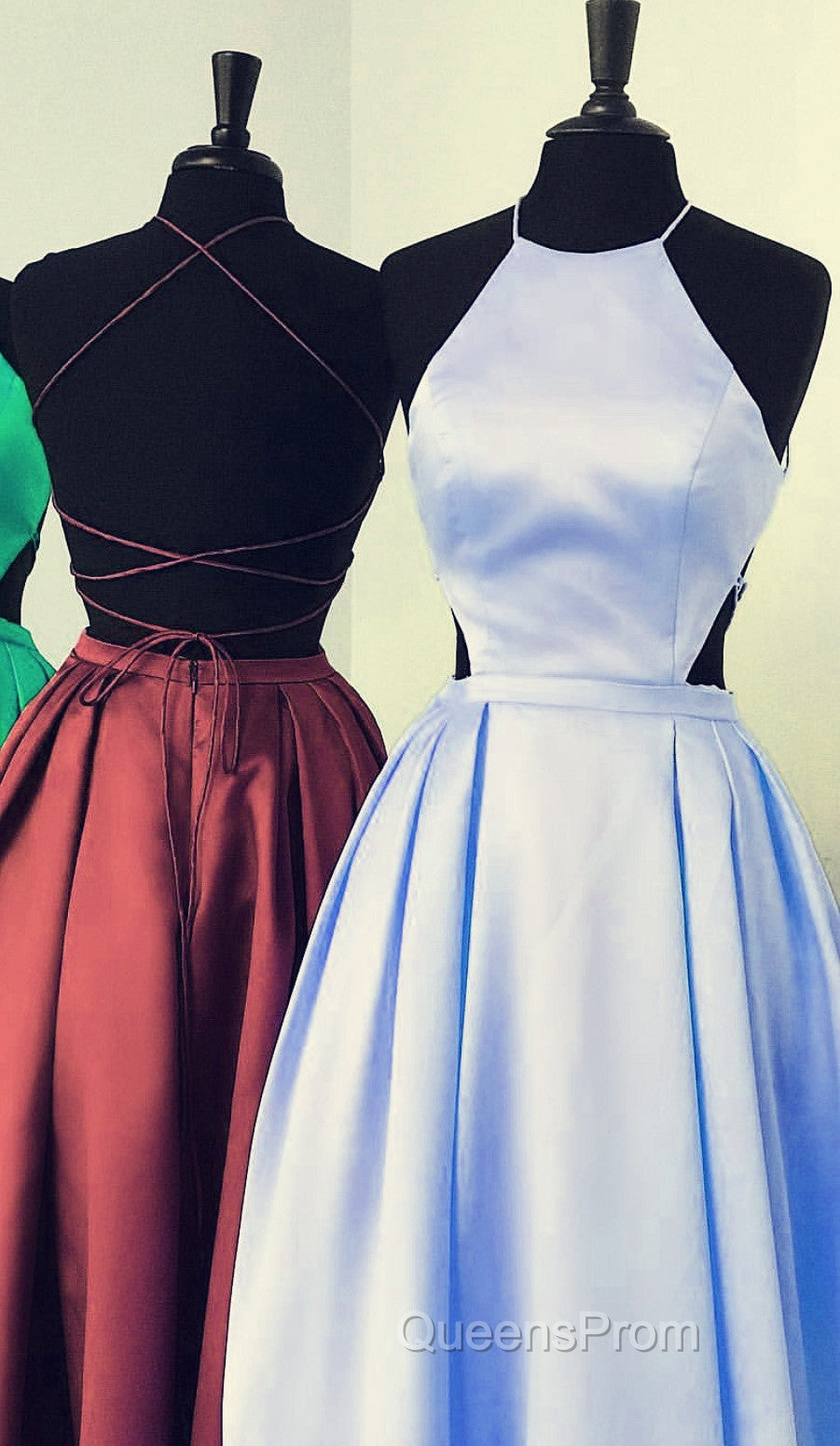 Halter Evening Prom Long Satin Gown Dress Lace Up Back