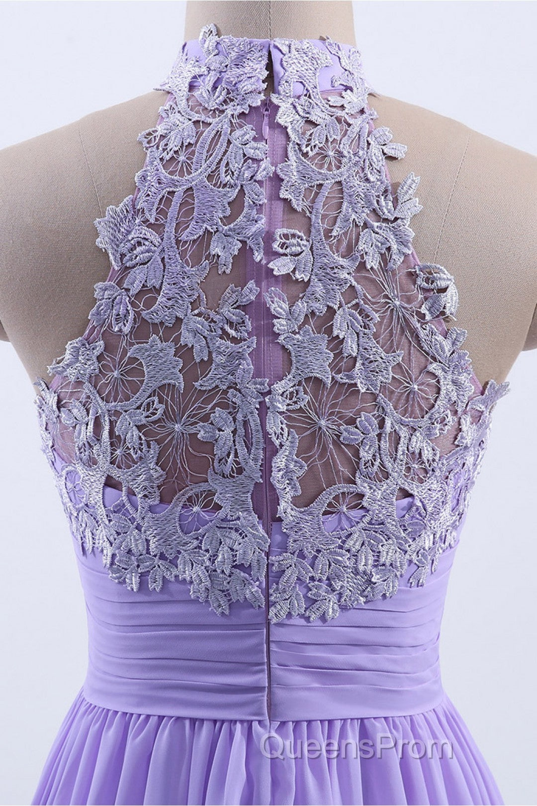 High Neck Lavender Chiffon Empire A-line Long Bridesmaid Dress