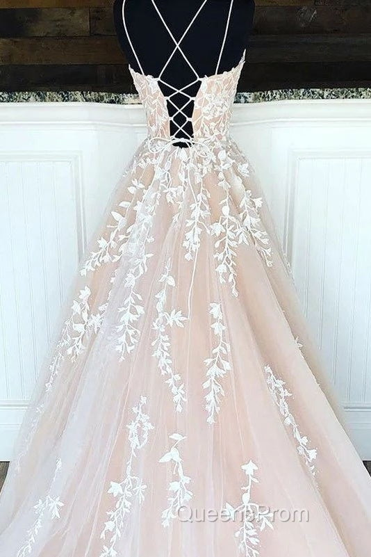 Hottest Elegant Spaghetti Straps Backless Lace Long Princess Evening Prom Dress For Teens