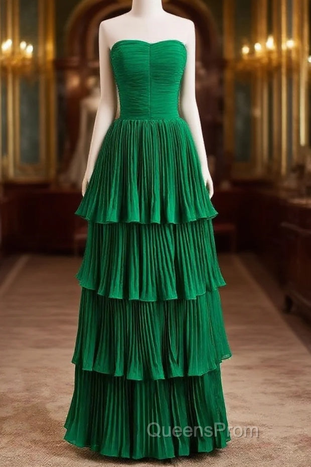 Hunter Green A-Line Chiffon Strapless Layers Long Evening Prom Dress Formal Evening Dress