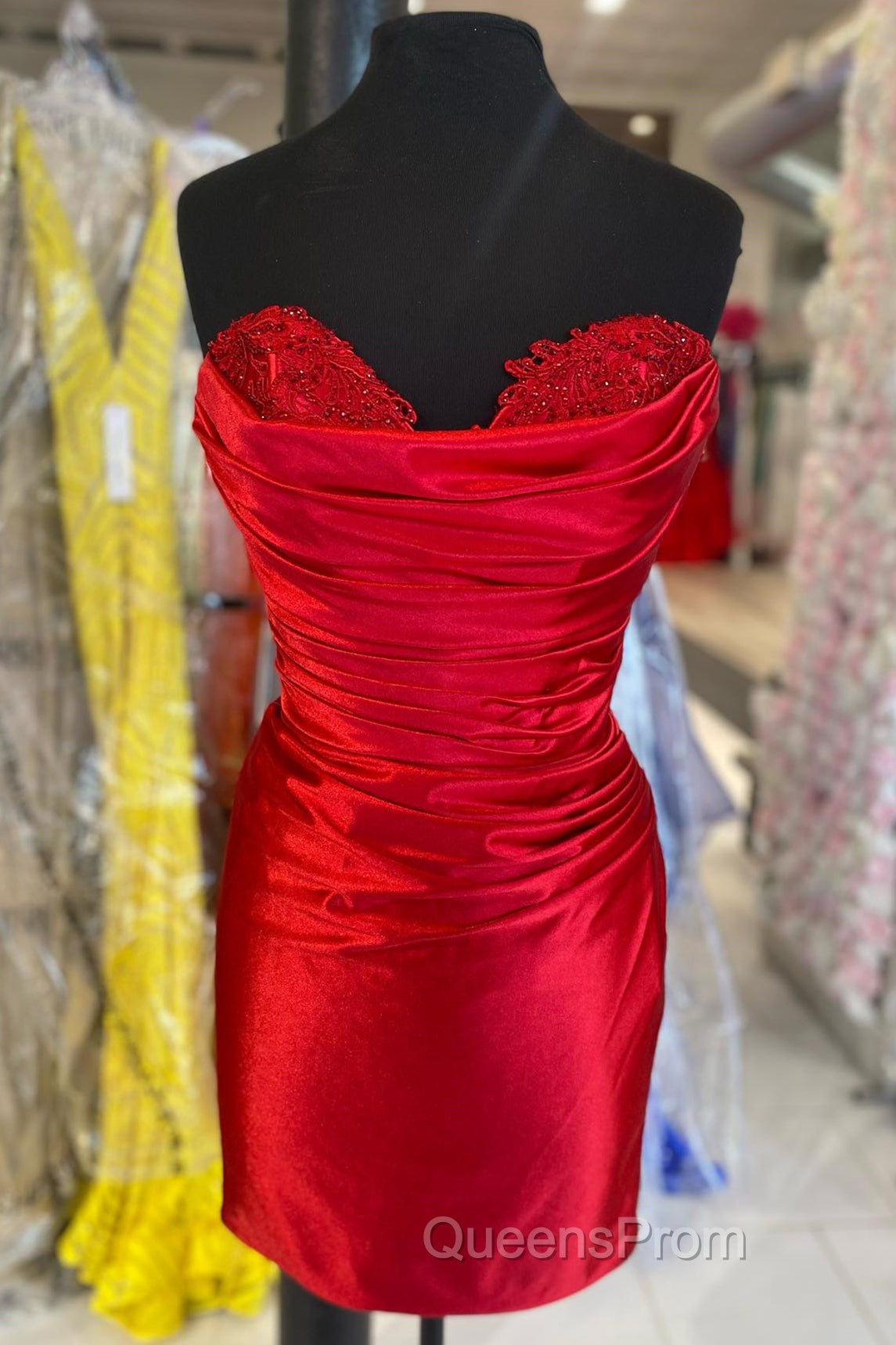 Hunter Green Strapless Beaded Pleated Sheath Homecoming Dress