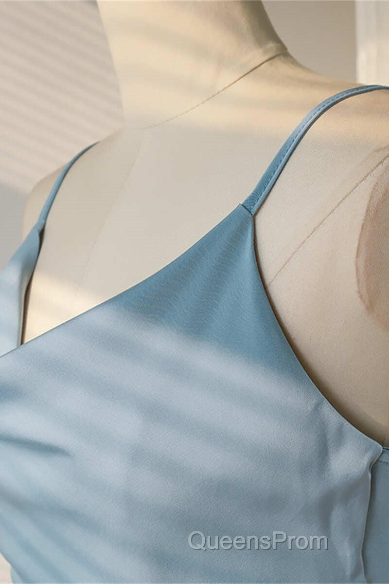 Ice Blue Cowl Neck Mid-Calf Length Bridesmaid Dress