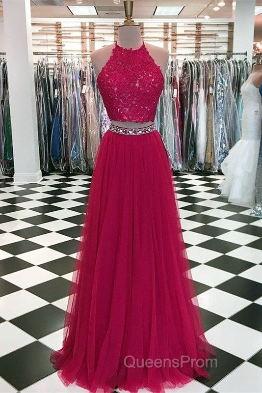 Lace Crop Top Tulle Evening Prom Dress Two Piece Evening Gowns Beaded Sashes