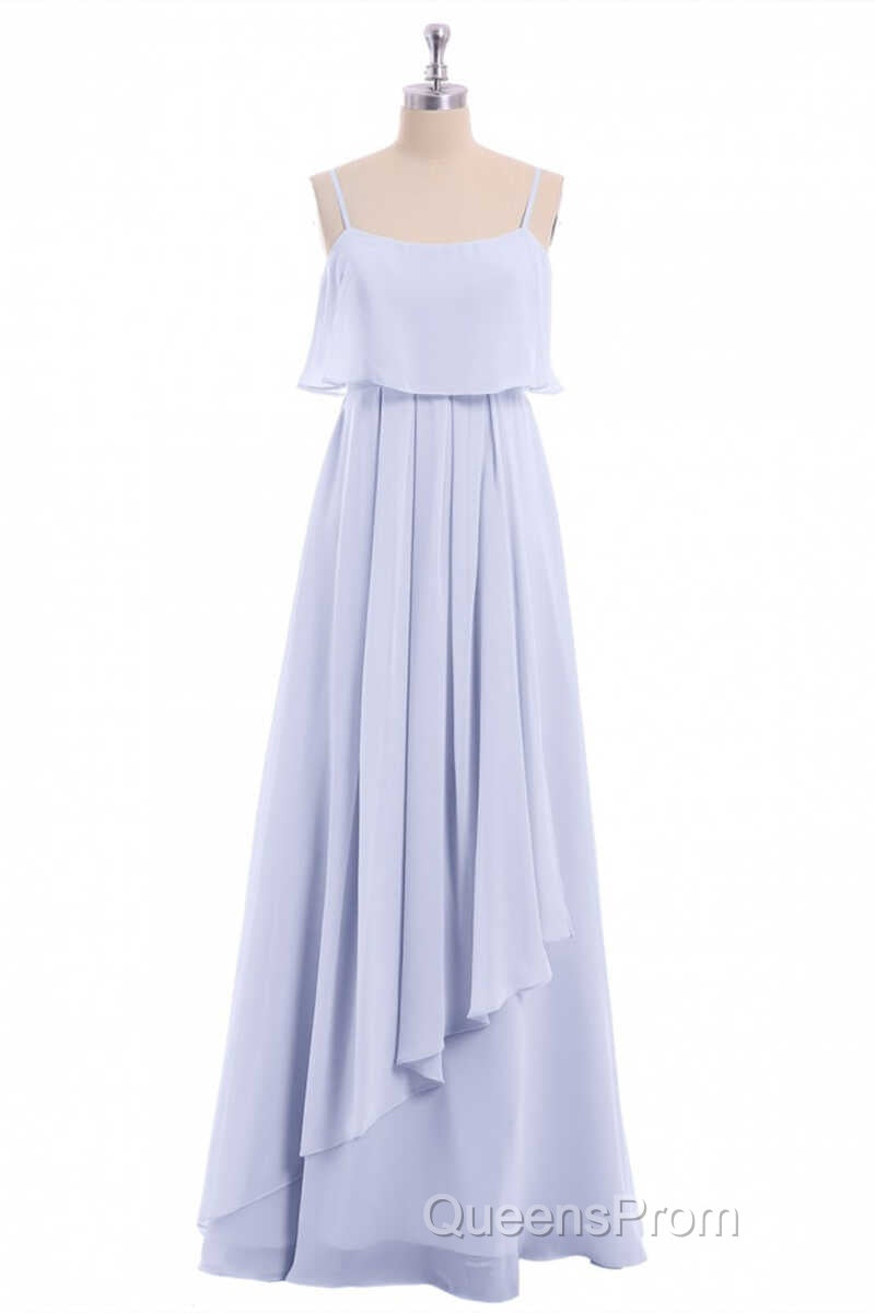 Lavender Chiffon Spaghetti Straps Ruffled A-Line Long Dress