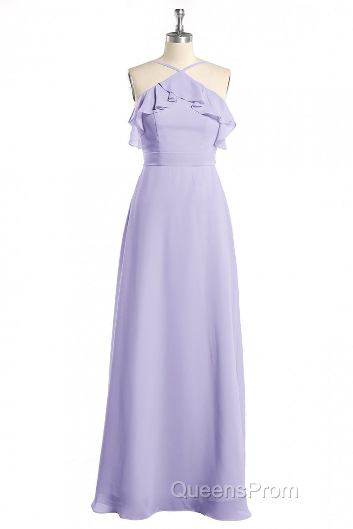 Lavender Halter Ruffled A-Line Long Bridesmaid Dress