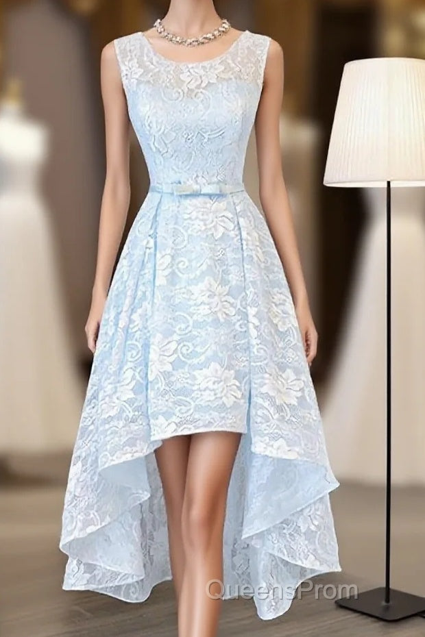 Light Blue Lace High Low Evening Prom Dress, Homecoming Dress