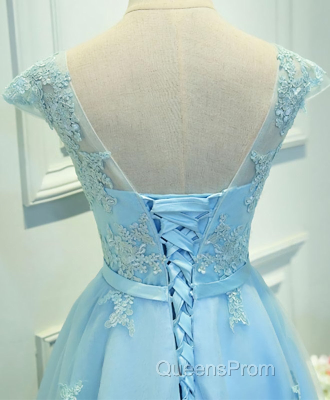 Light Blue Lace Tulle Short Evening Prom Dress, Homecoming Dress