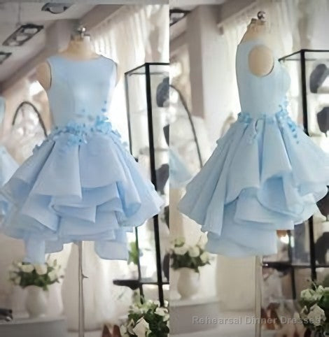Light Blue Satin Organza Short Party Dress, Cute Homecoming Dress