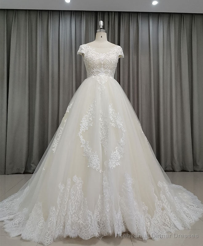 Light Champagne Tulle Lace Long Wedding Dress Lace Bridal Dress