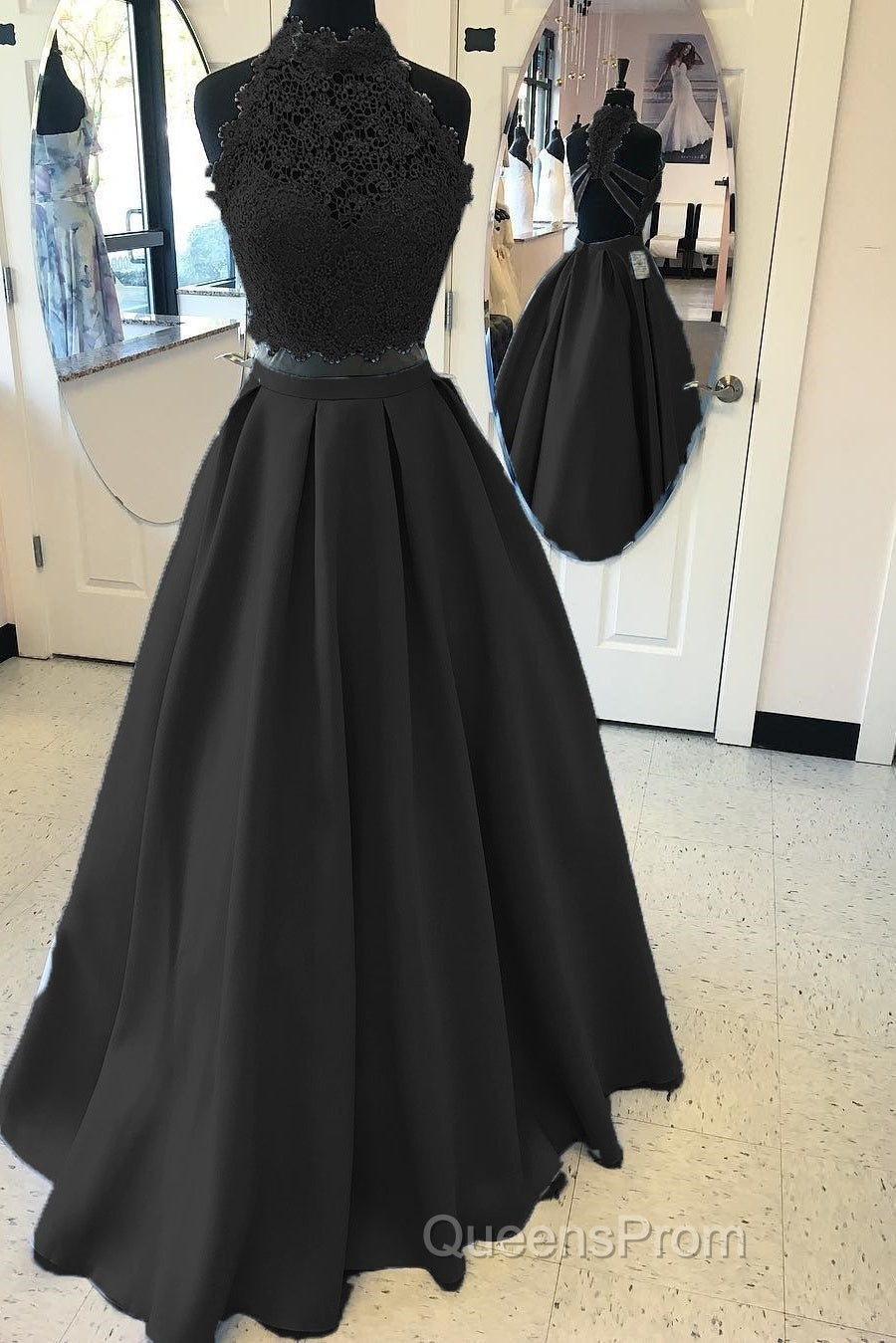 Long Two Piece Evening Prom Dress Lace High Neck Open Back