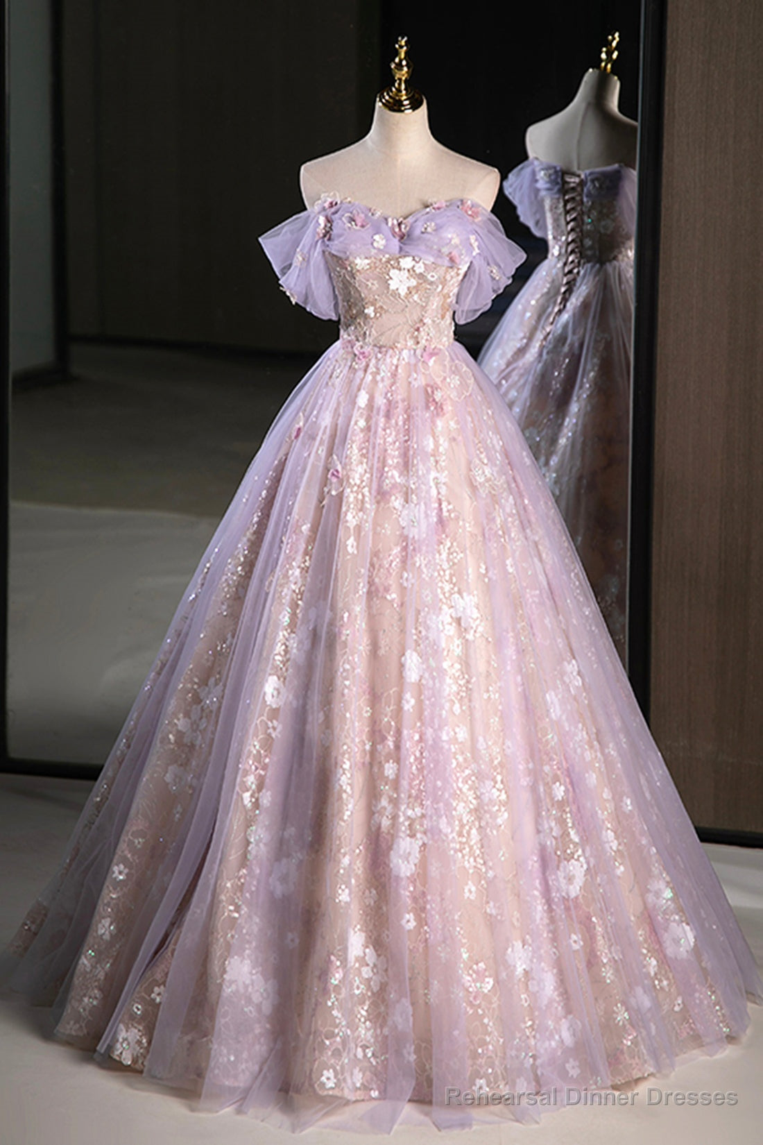 This Lovely A-Line Off the Shoulder Sequins Prom Dress is a botanical masterpiece. Adorned with intricate floral patterns, it brings natures beauty to life on the fabric. The flowers seem to bloom with every step, adding a touch of enchantment and allure to your presence.
