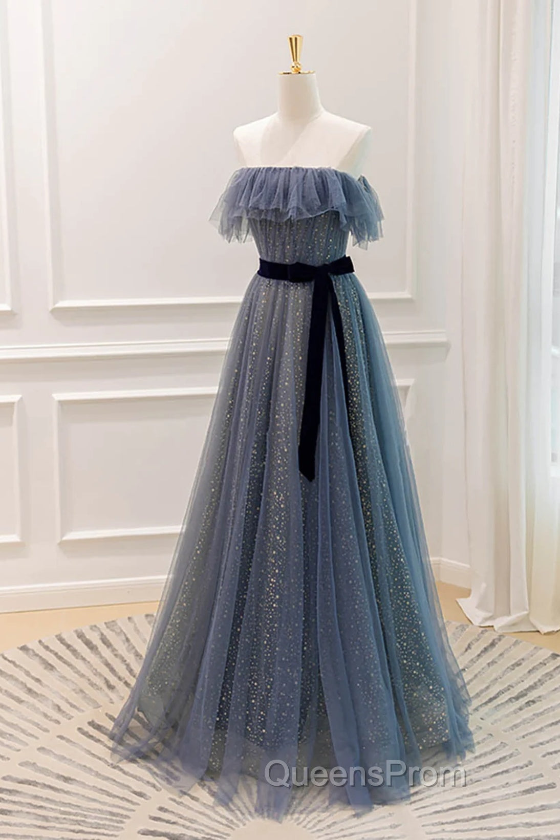 Lovely Blue A-Line Shiny Tulle Sweetheart Party Dress, Blue Long Formal Dress Evening Prom Dress