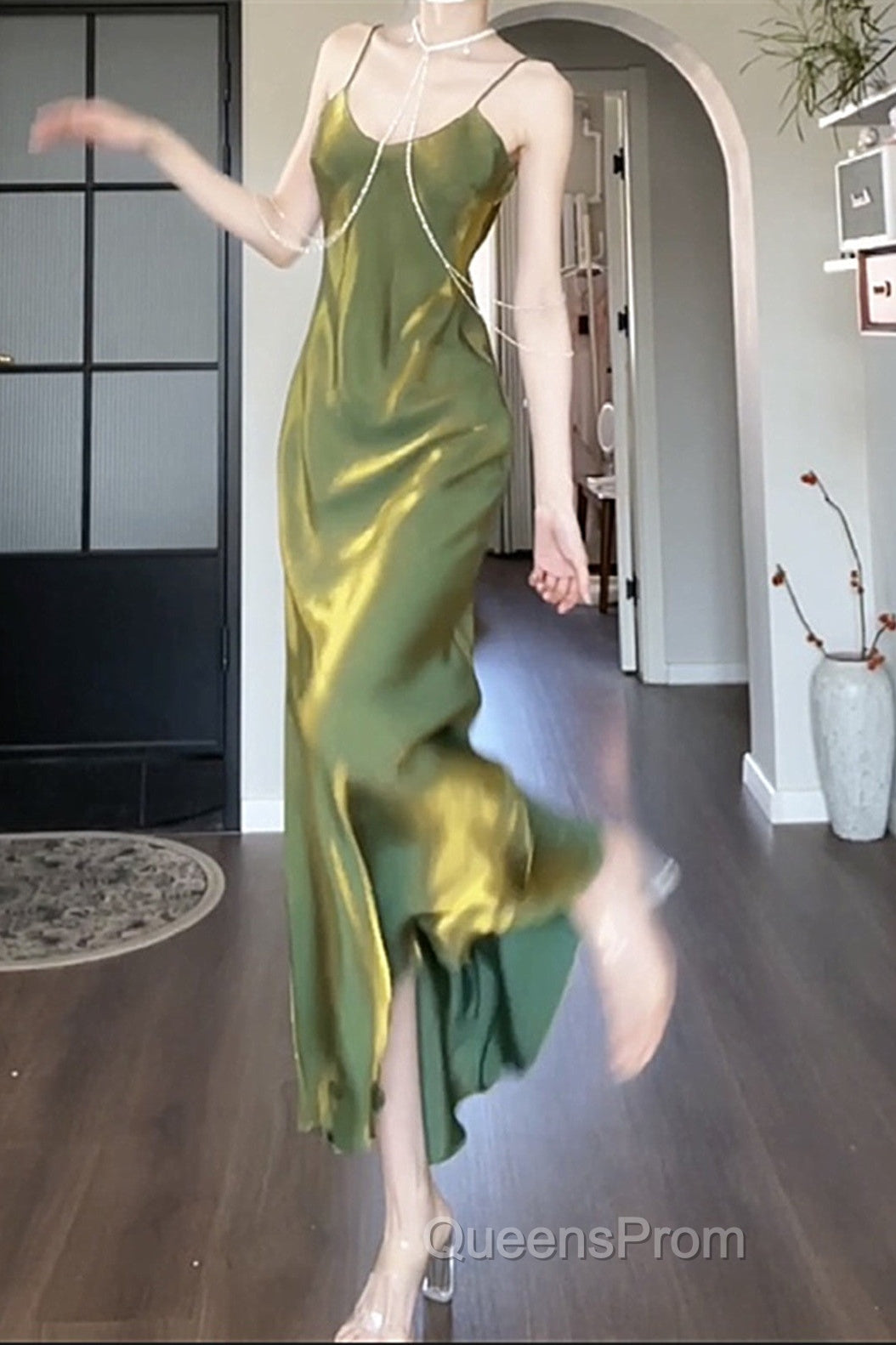 Lovely Green Straps Long Formal Dress, Green Satin Party Dress Evening Dress