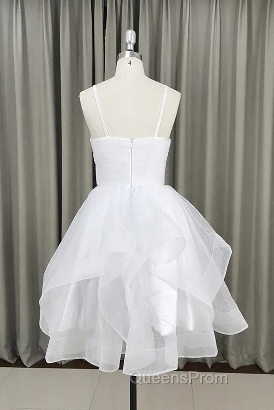 Lovely White Tulle V-Neck Short Party Dress,Homecoming Dress