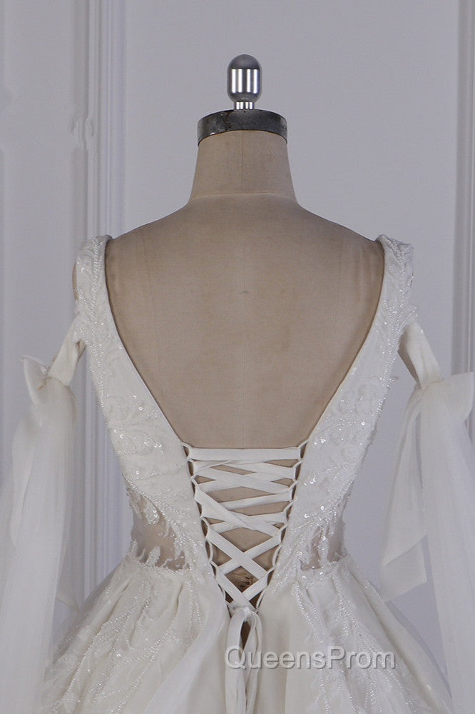 Luxury V-Neck Beadings Wedding Dress Tulle Sleeveless Sequined Bridal Gowns