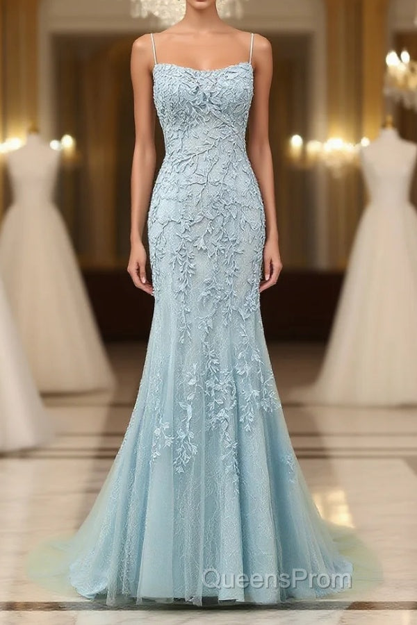 Mermaid Blue Long Evening Prom Dress Backless Evening Dress