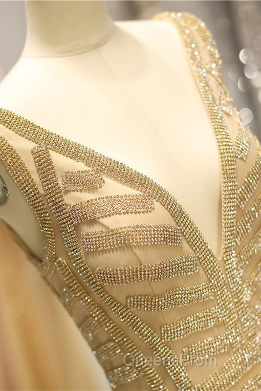 Mermaid Deep V-Neck Gold Beaded Evening Prom Dress