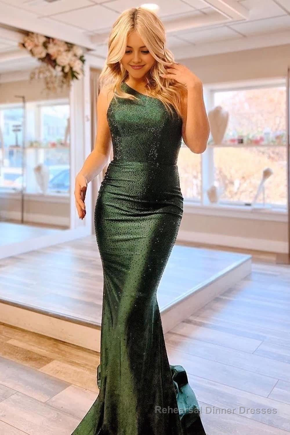 Mermaid One Shoulder Army Green Long Prom Dress with Beading