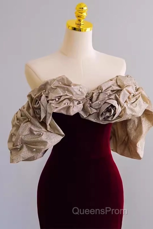 Mermaid Strapless Wine Red Long Evening Prom Dress