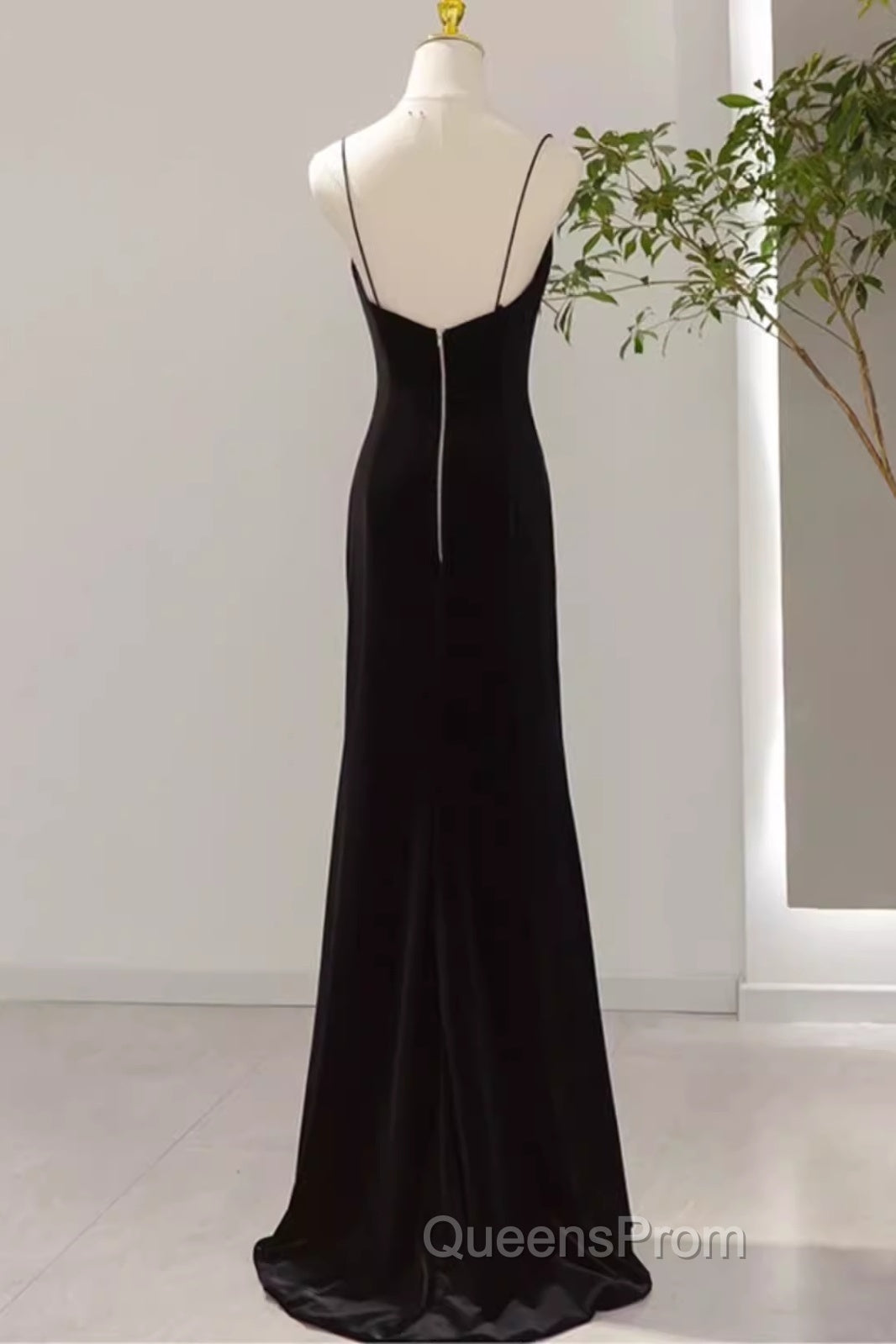 Mermaid Straps Black Velvet Long Evening Prom Dress