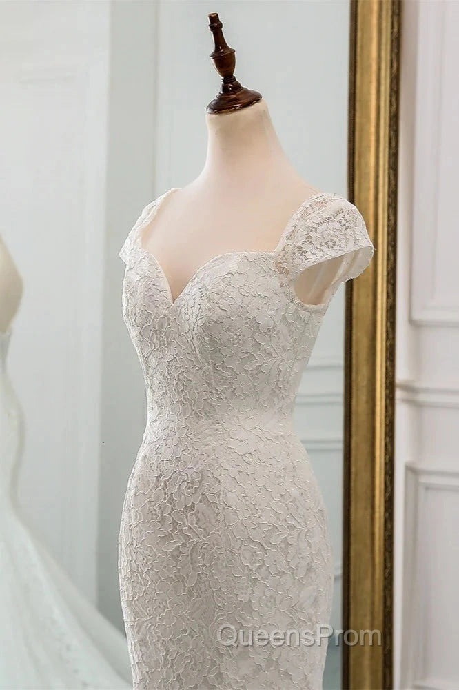 Mermaid Sweetheart Lace Long Wedding Dress Bride Gown Cap Sleeves