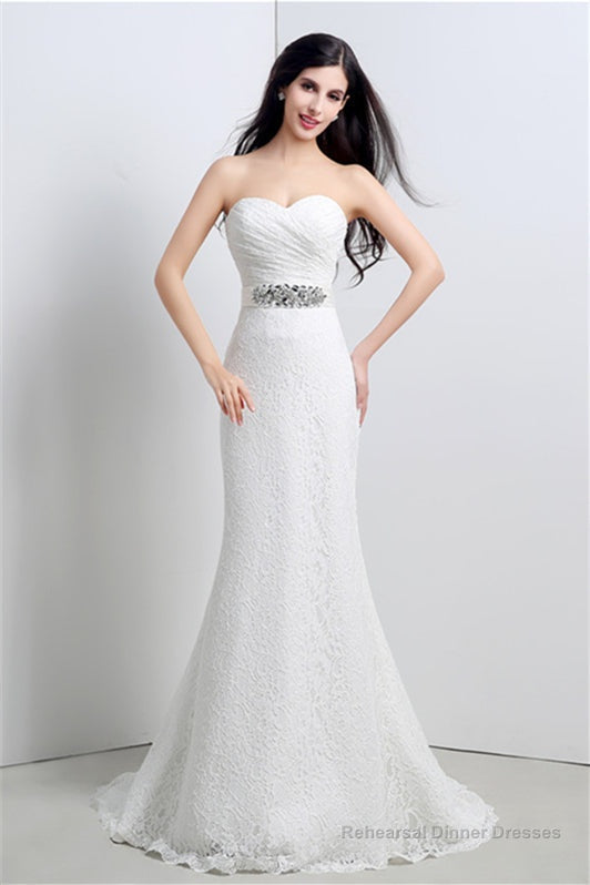 Mermaid Sweetheart Lace Rhinestone Long Wedding Dresses