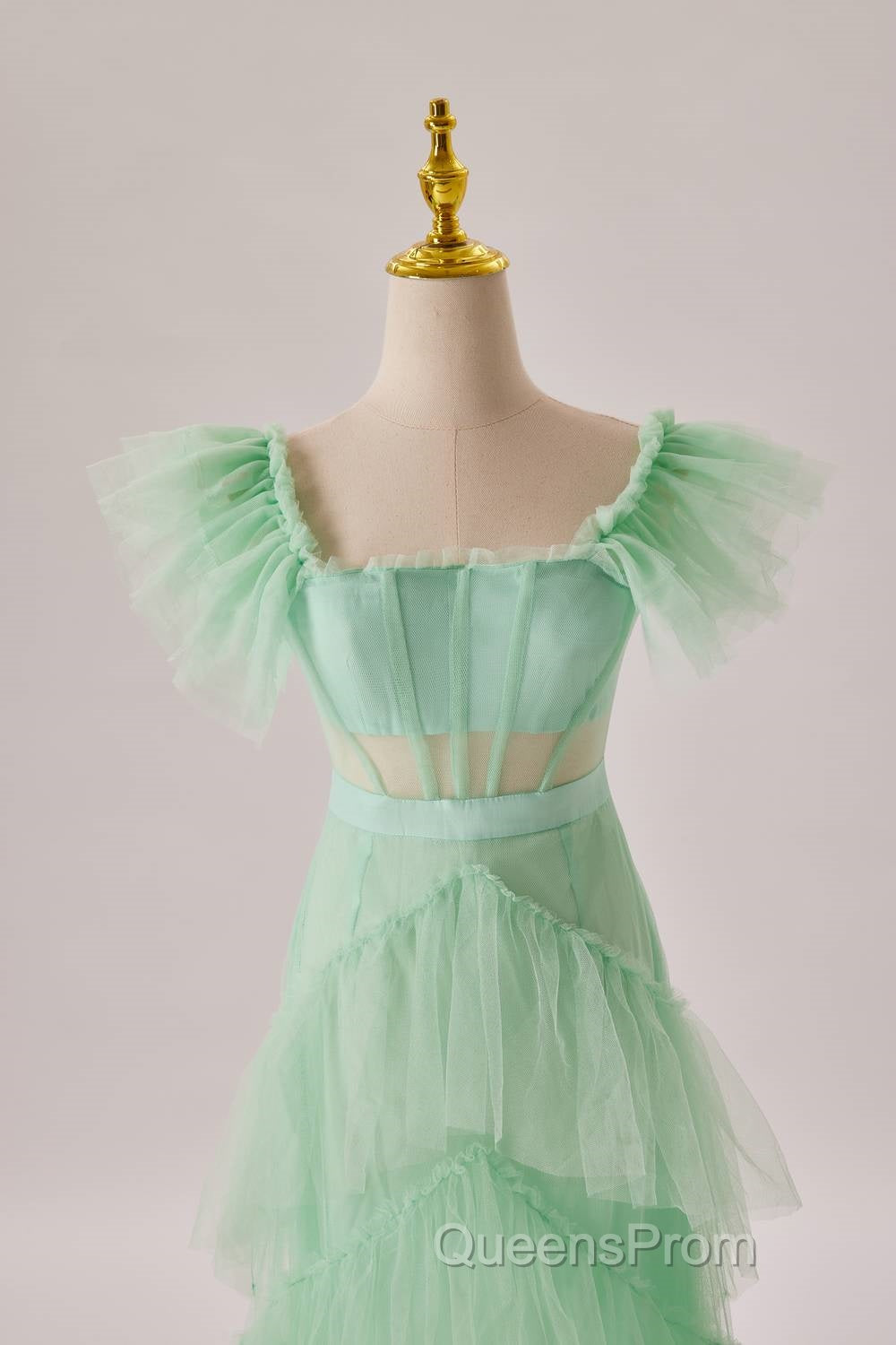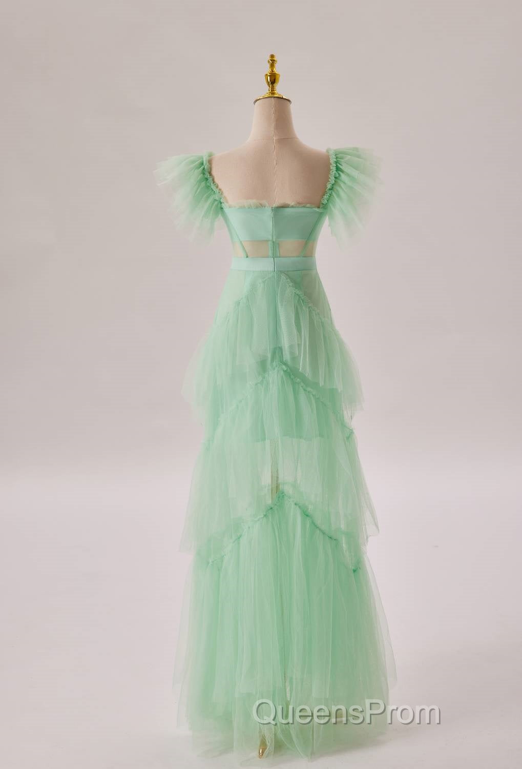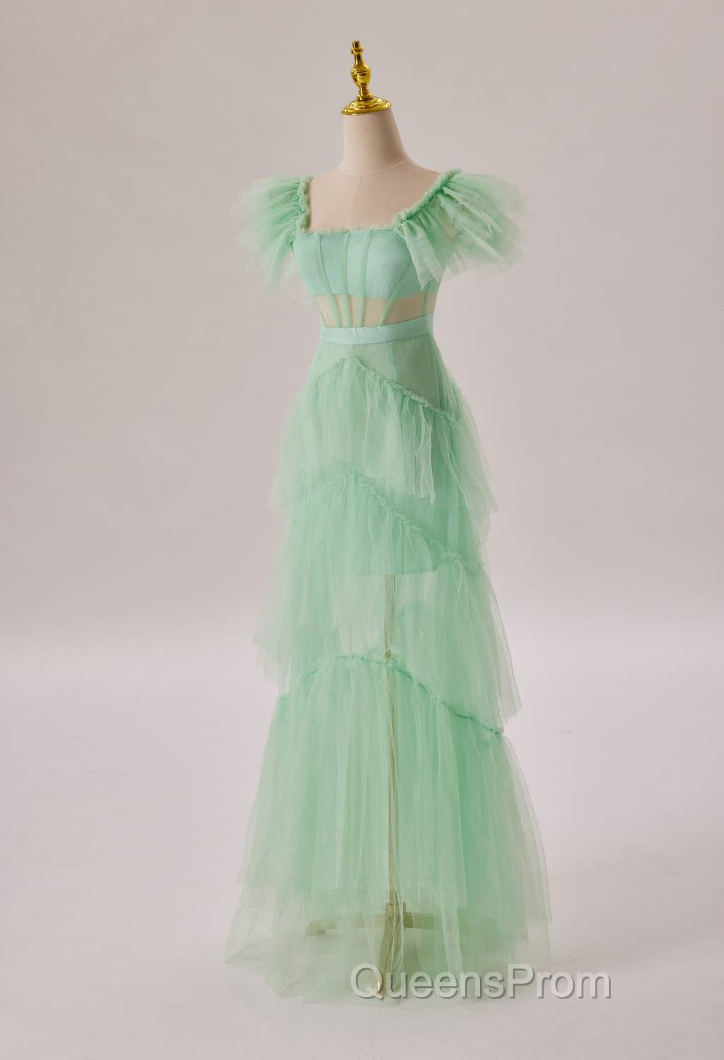 Mint Green Flare Sleeves Ruffles Long Party Dress