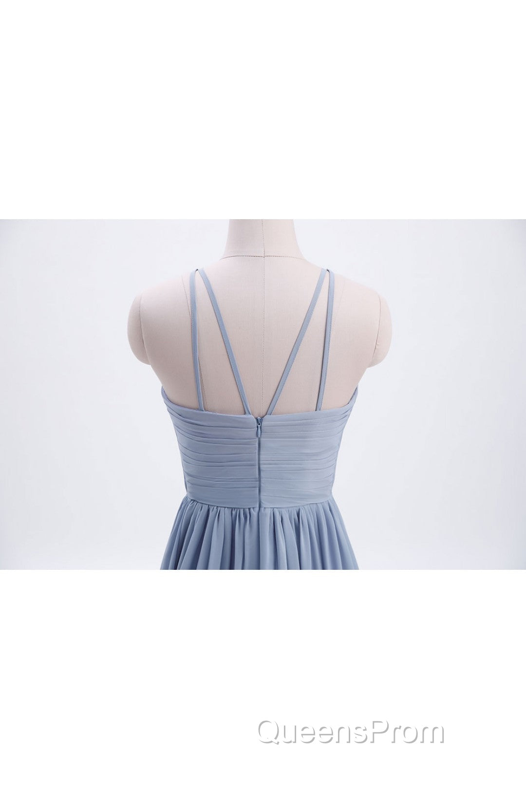 Misty Blue Scoop Chiffon A-line Long Bridesmaid Dress