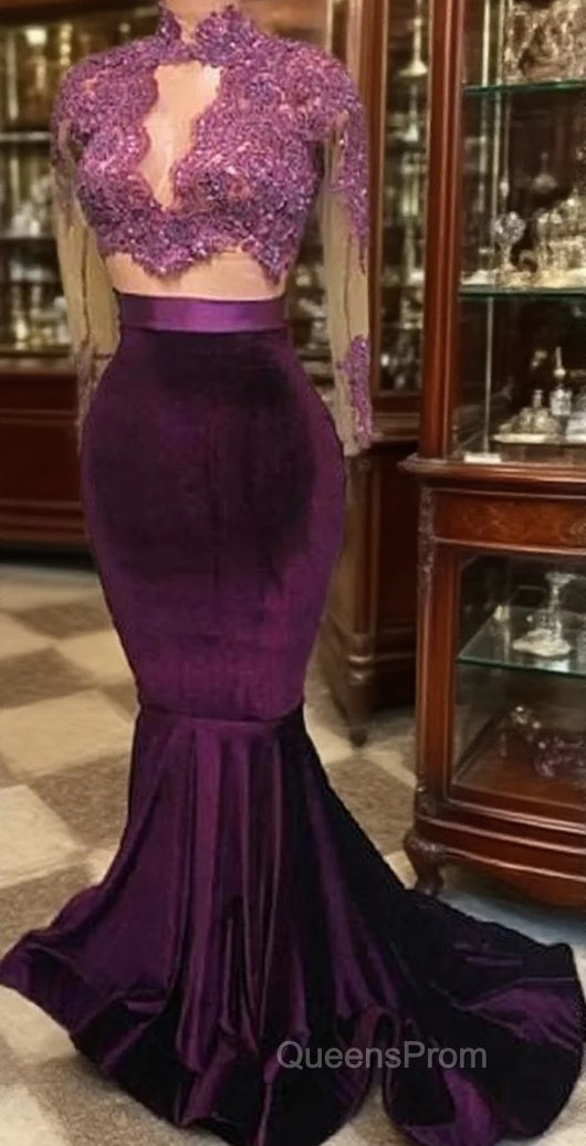 Modest Lace Long-Sleeve High-Neck Mermaid Evening Prom Dress