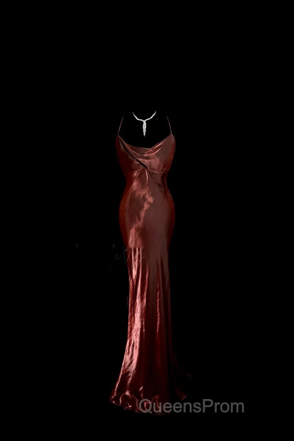 Modest Mermaid Spaghetti Straps Burgundy Evening Prom Dress Ruffle Long Party Dress