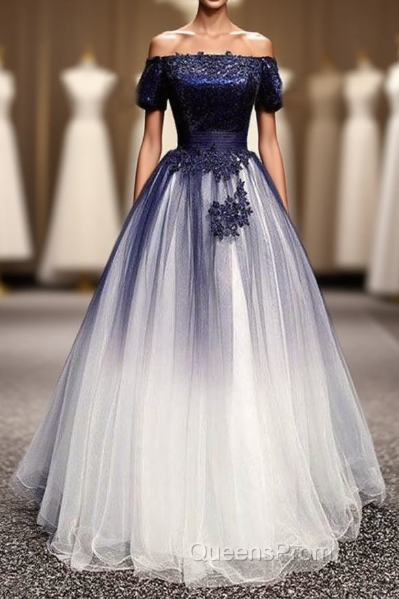 Modest Royal Blue Long Flowy Evening Evening Prom Dress With Lace Appliques