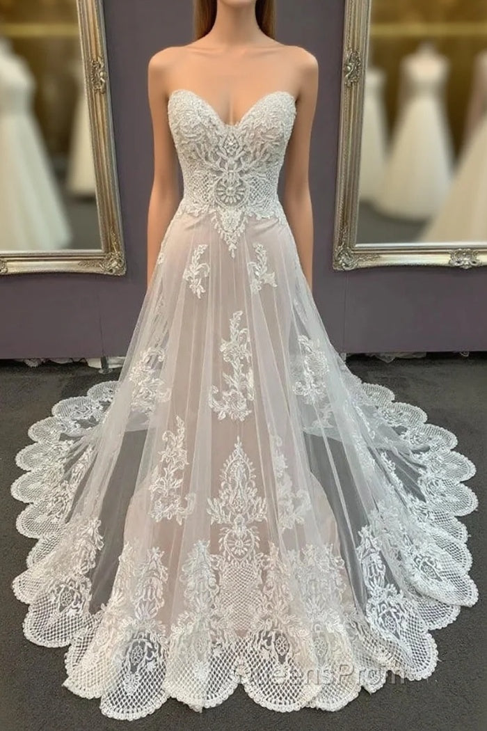 Modest Sweetheart Lace Long Wedding Dress Beach Wedding Dress