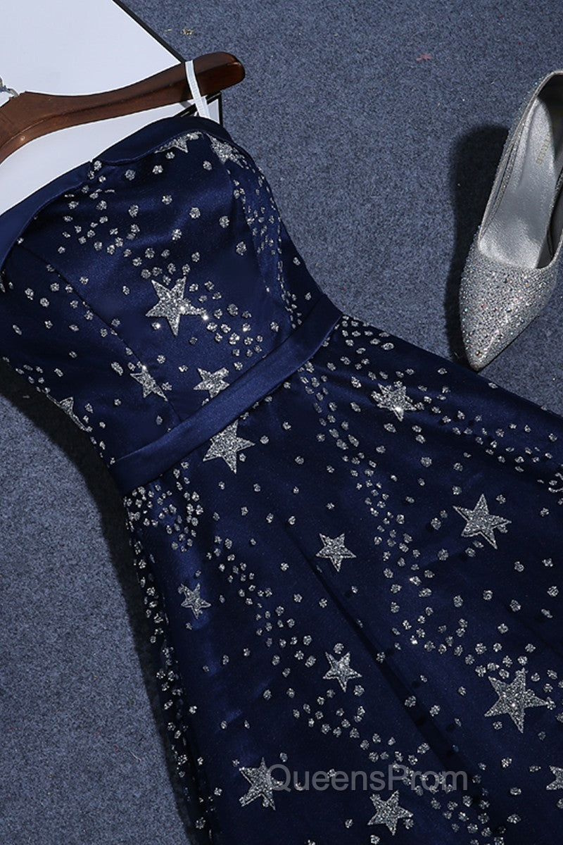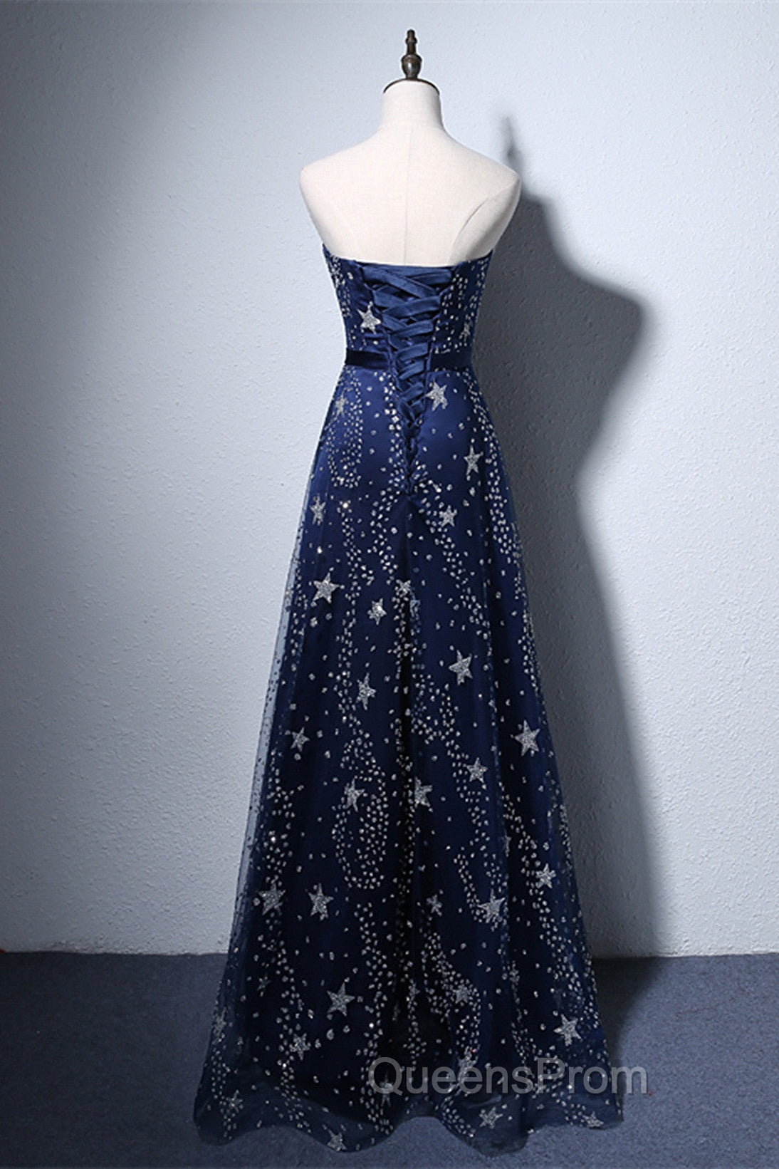Navy Blue A-Line Tulle Long Evening Dress, Navy Blue Evening Prom Dress