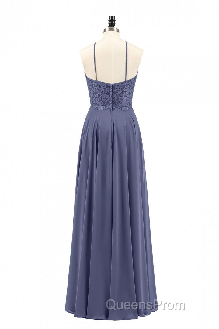 Navy Blue Chiffon Halter Backless A-Line Long Bridesmaid Dress