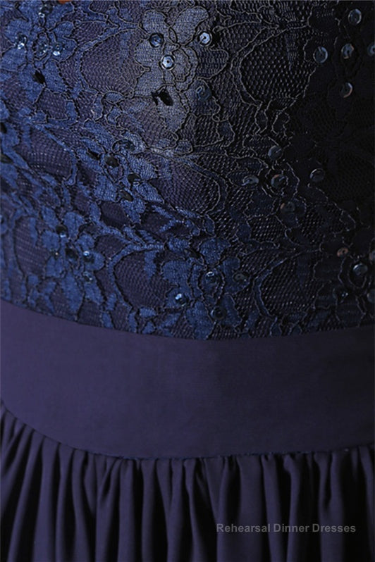 Navy Blue Chiffon Sweetheart Lace Beading Short Homecoming Dresses