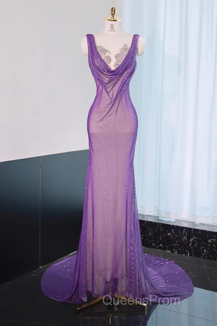 Noble Purple Mermaid Gown - Glitter Rhinestone Tulle Evening Prom Dress For Special Ocassions