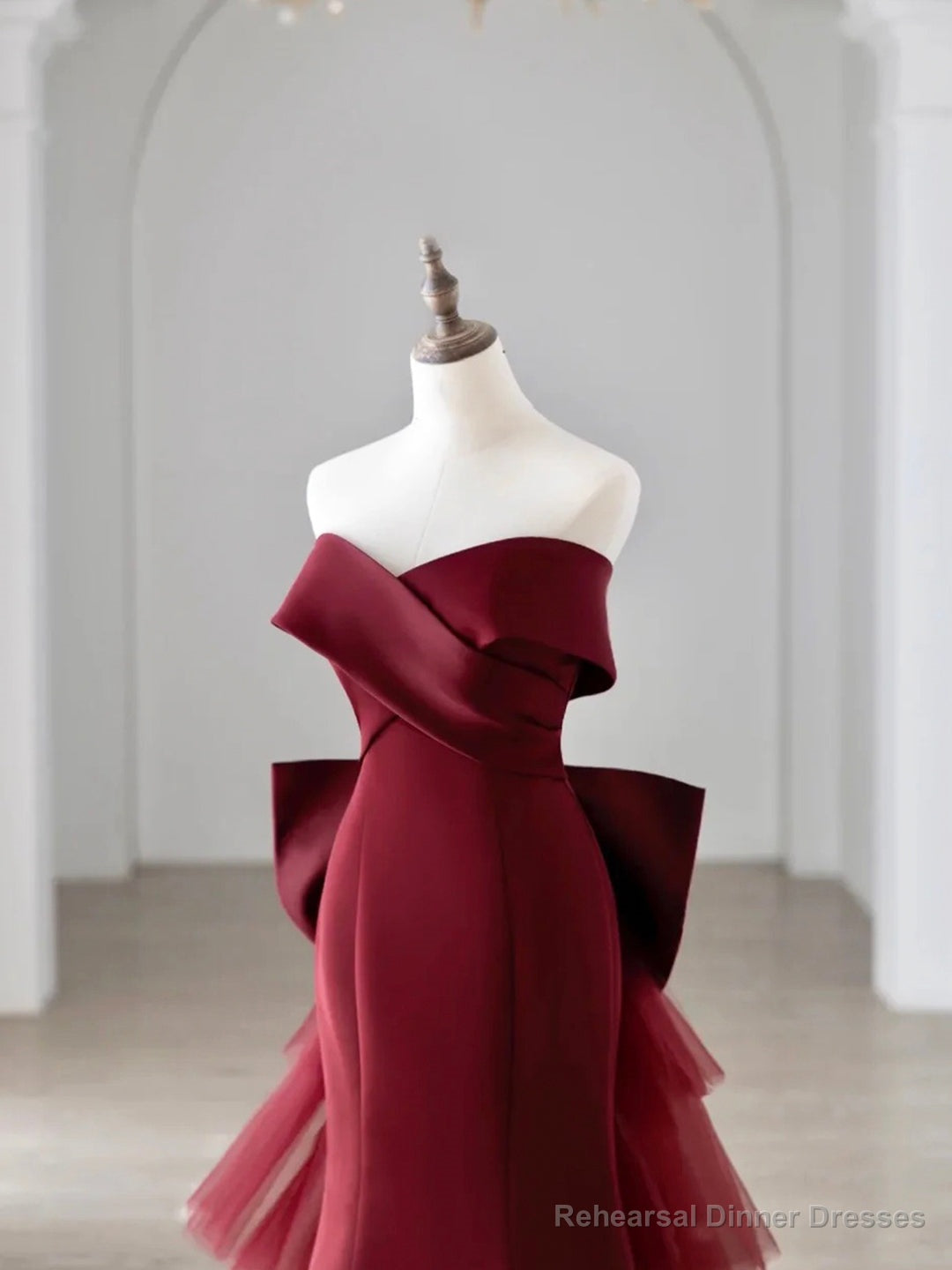 Off the Shoulder Floor Length Satin Prom Dress, Mermaid V-Neck Evening Party Dress