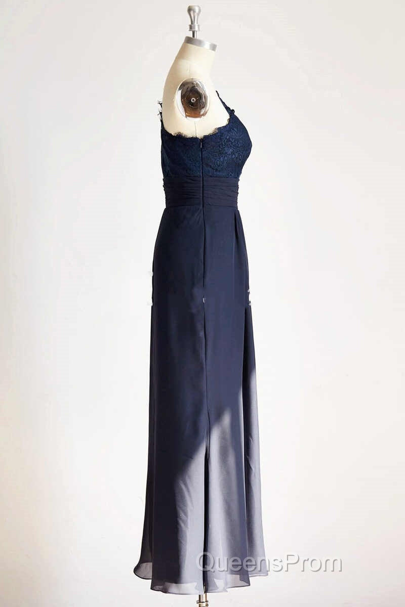 One-Shoulder Navy Blue Lace Long Bridesmaid Dress