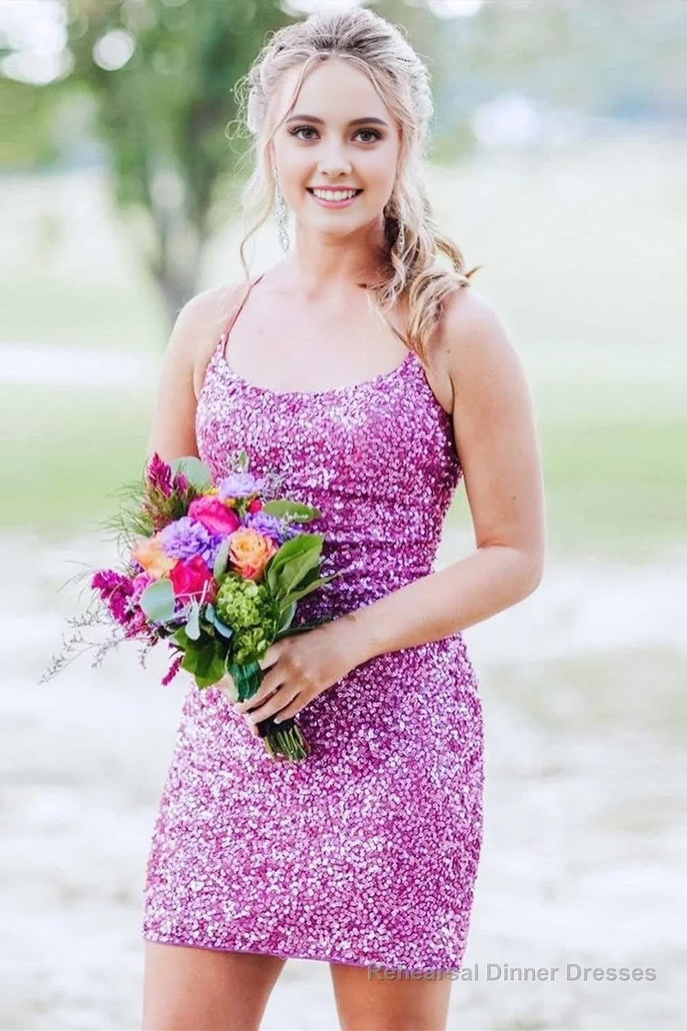 Orange Spaghetti Straps Backless Sequins Tight Homecoming Dress