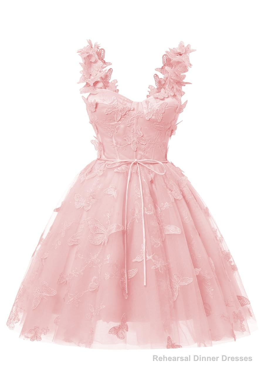 Pink 3D Butterfly Lace Applique Tulle Homecoming Dress for Teens Sweetheart Mini Short Prom Dresses