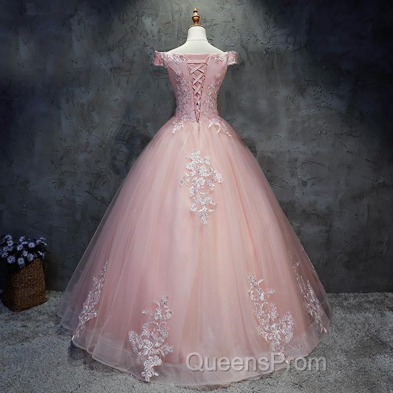 Pink Cap Sleeves Ball Gown Tulle With Lace Sweet 16 Evening Prom Dress, Long Quinceanera Dress