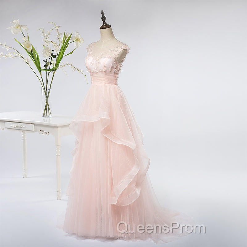 Pink Elegant Tulle A-Line Floor Length Wedding Party Dress, Light Pink Gown