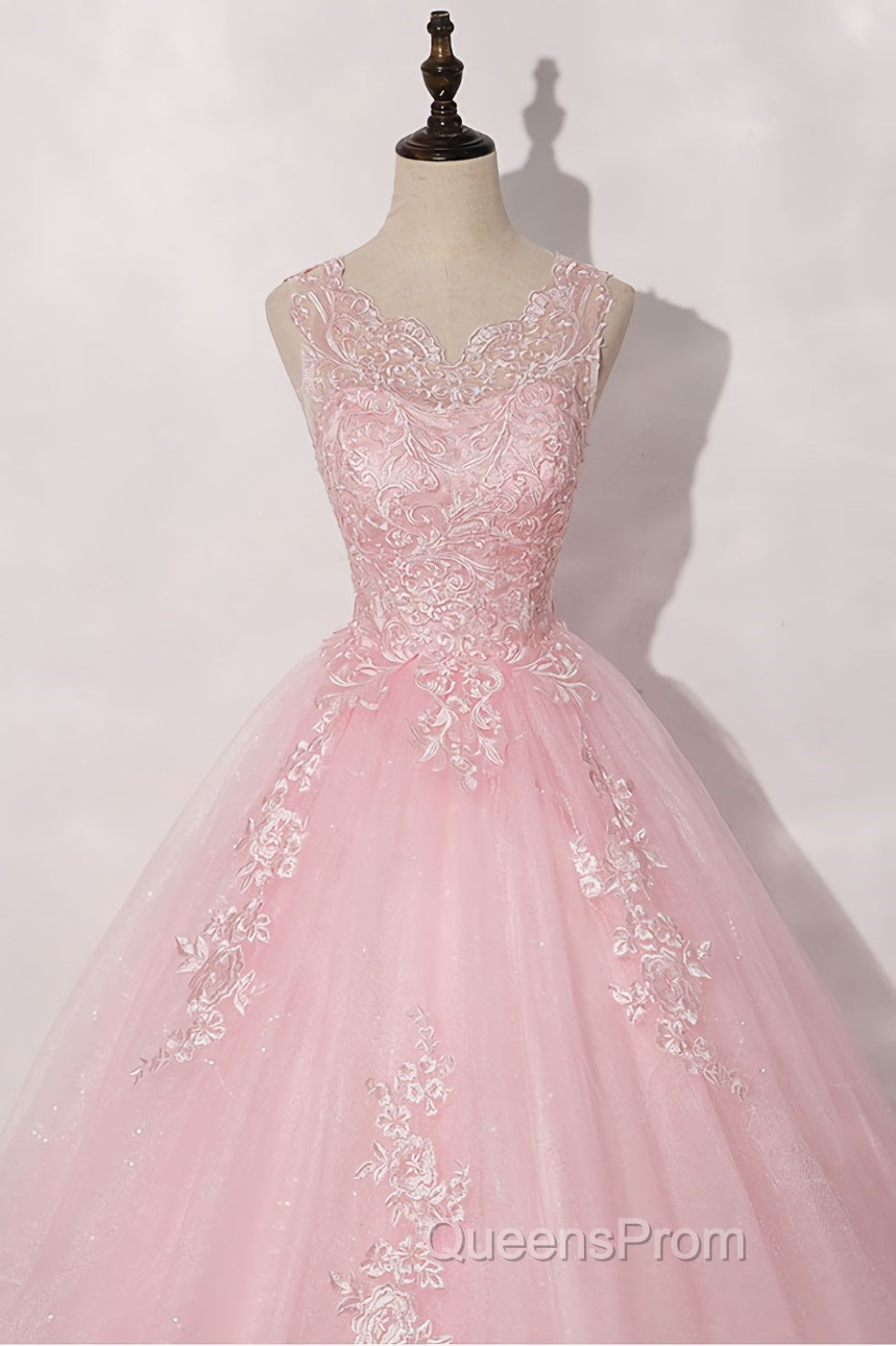 Pink round neck tulle lace long Evening Prom Dress pink tulle formal Dress