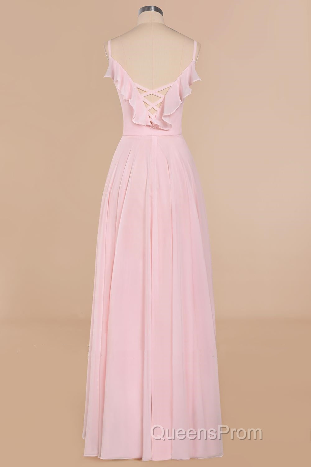 Pink Ruffle Lace-Up A-Line Long Bridesmaid Dress