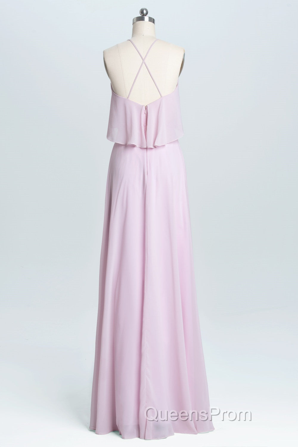 Pink Straps Flounce Chiffon A-line Long Bridesmaid Dress