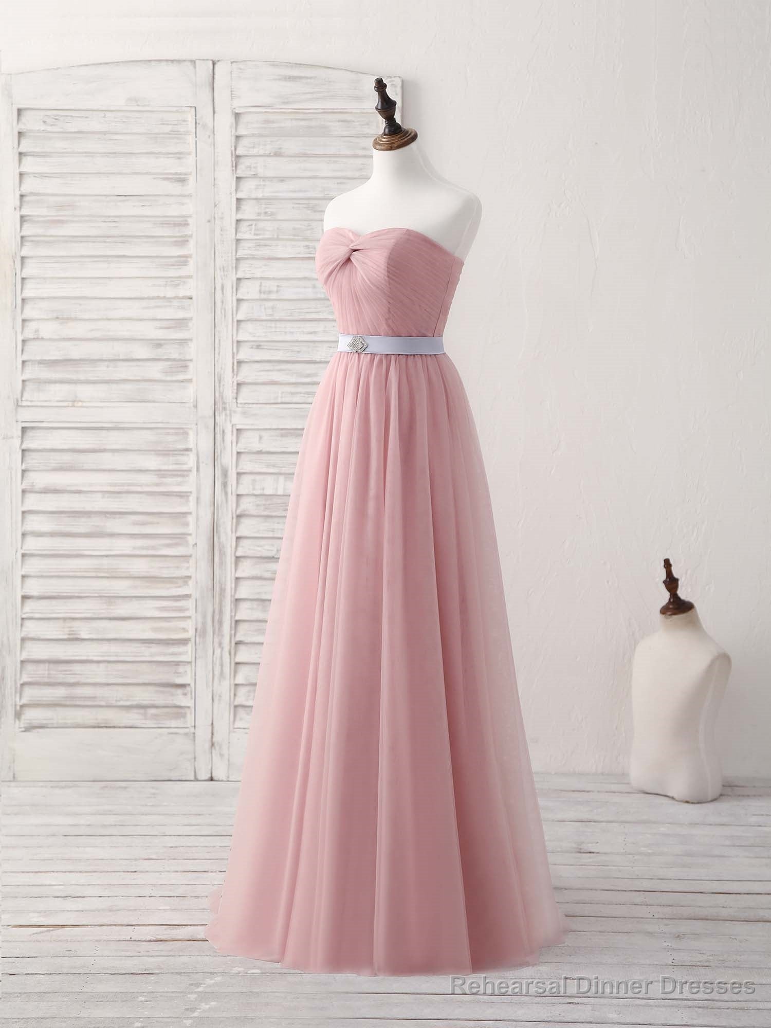 Pink Sweetheart Neck Tulle Long Prom Dress, Aline Pink Bridesmaid Dress