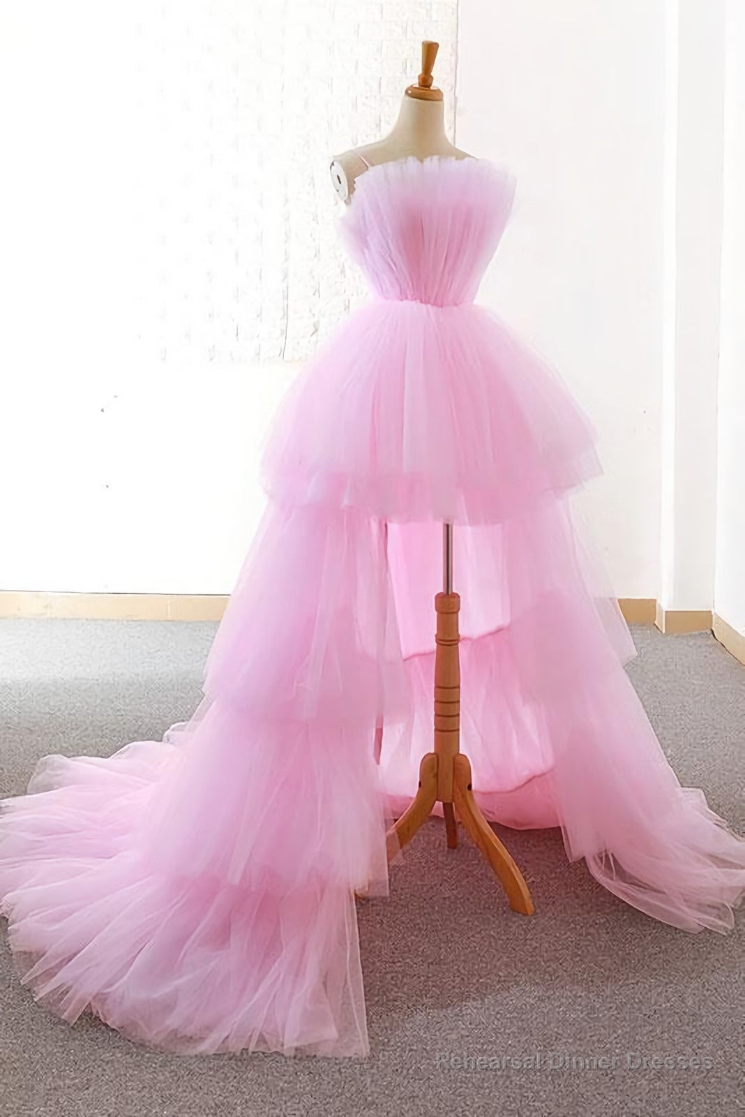 Pink Tulle Long Prom Dress, Pink Tulle Evening Dress