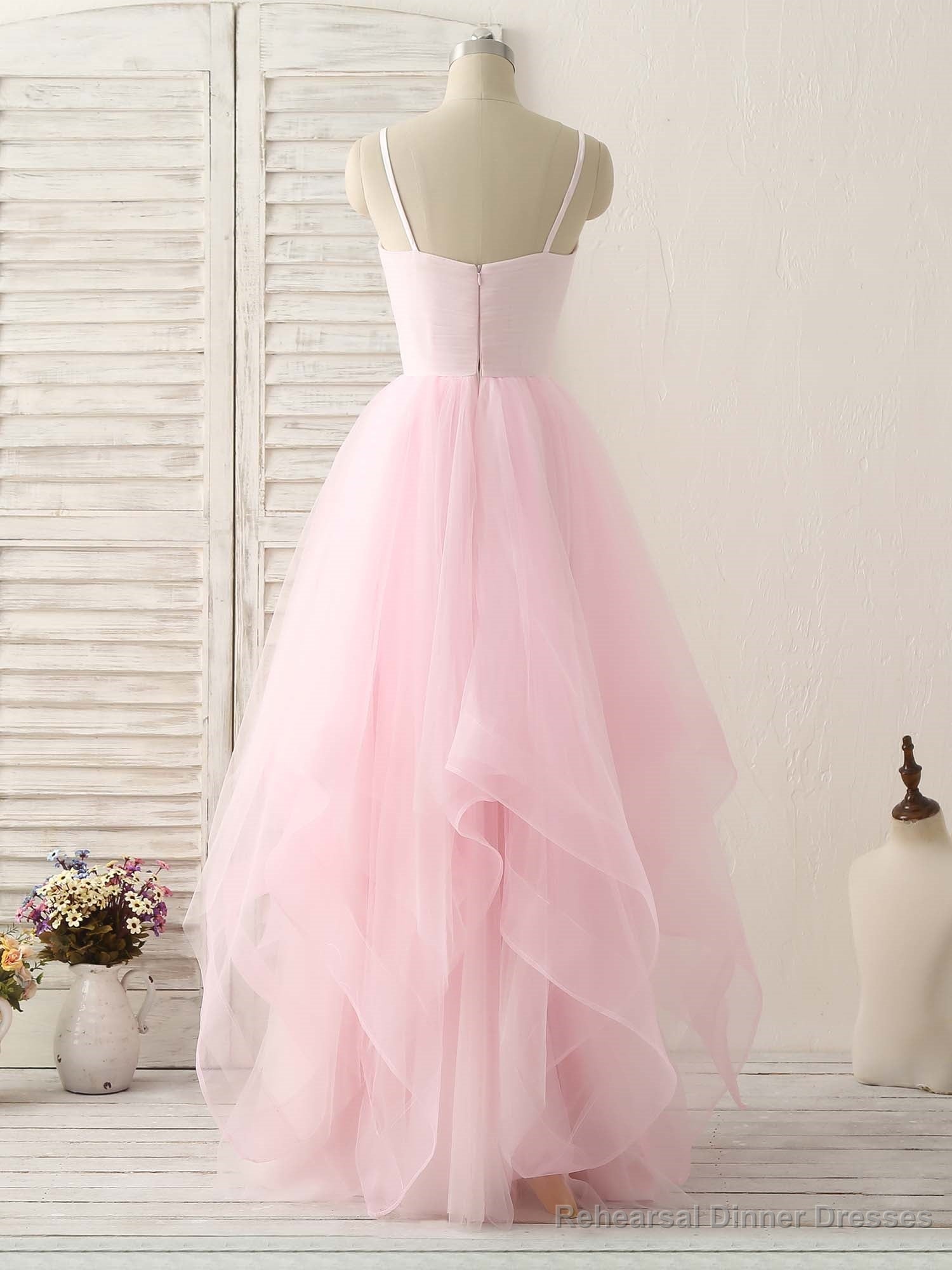 Pink V Neck Tulle Long Prom Dress Simple Pink Tulle Evening Dress